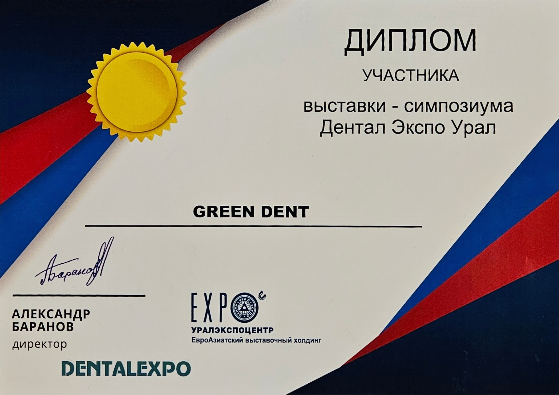 Диплом участника Дентал-Экспо Урал 2024